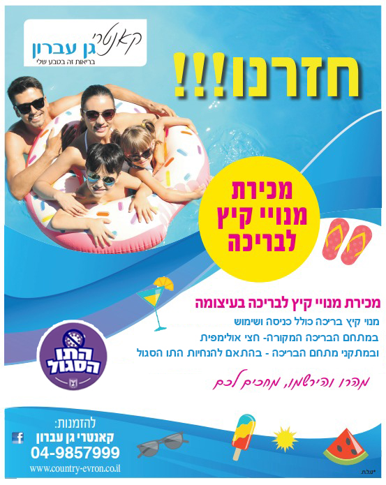 - בחודשי הקיץ, מופעלת בריכת פעוטות והפעלות קיץ מגוונות לכל המשפחה